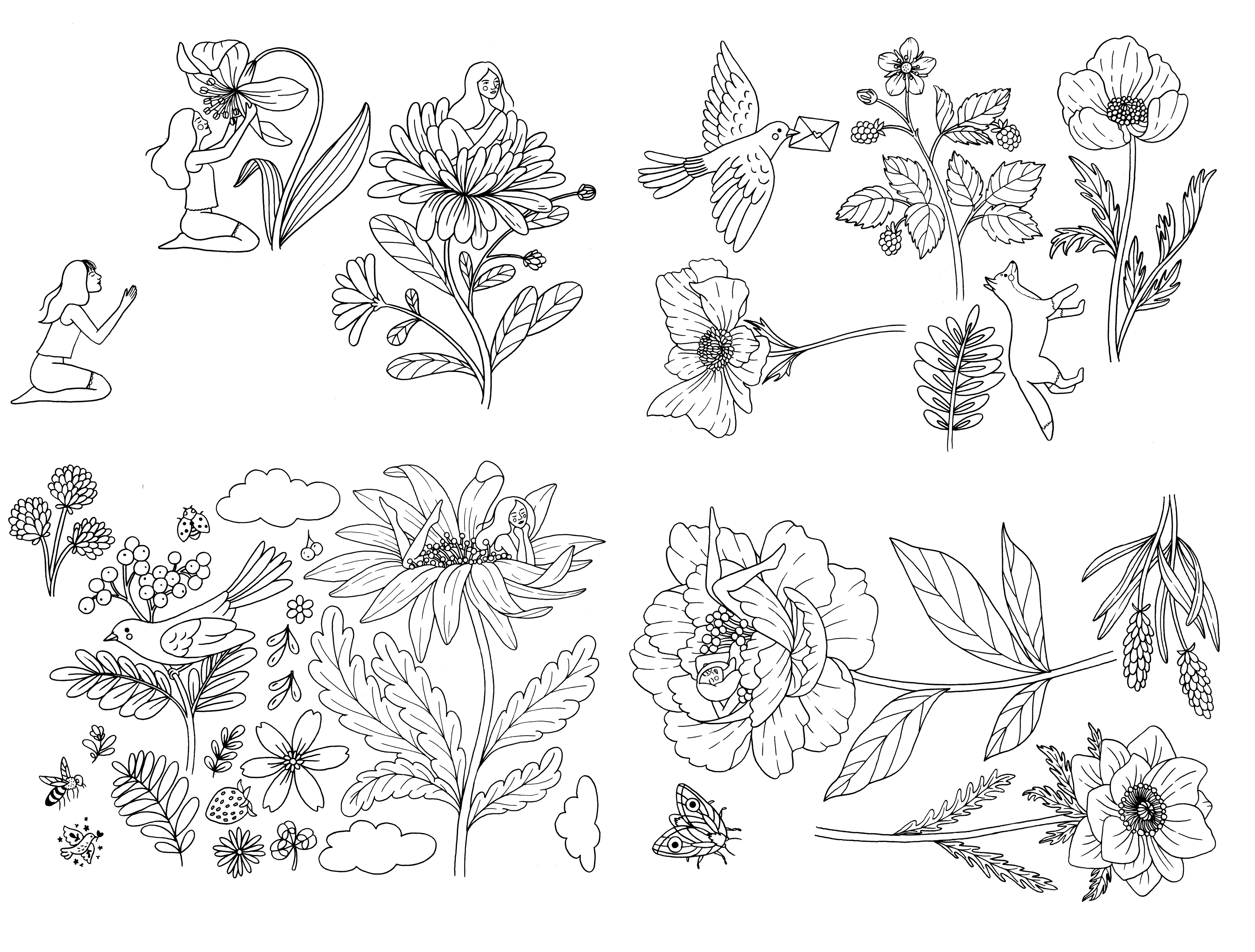 Ink drawings that I used to create a seamless pattern
